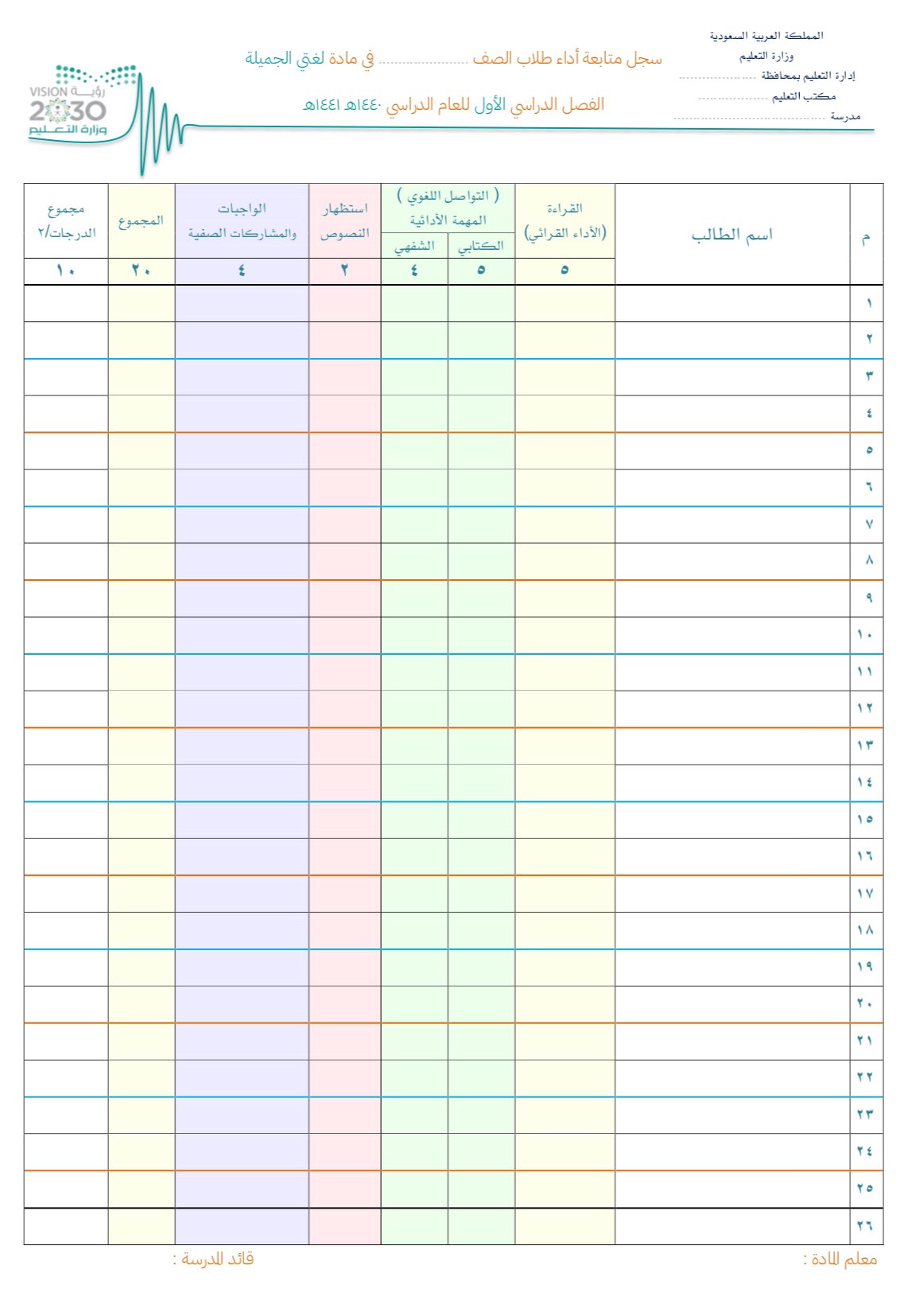 معتوق بن علي Pa Twitter سجل متابعة أعمال السنة لمادة لغتي الجميلة للصف الرابع والخامس والسادس الفصل الدراسي ١ ٢ نسخة جاهزة للطباعة Pdf Https T Co Hrxf2oxnjq نسخة قابلة للتعديل Word Https T Co 64pbvadngf