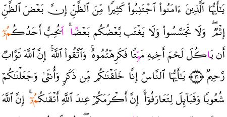 المصحف المحفظ رواية ورش عن نافع من طريق الأصبهاني سورة الحجرات الآية 12