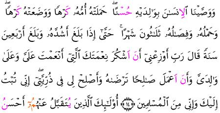 المصحف المحفظ رواية ورش عن نافع من طريق الأصبهاني سورة الأحقاف الآية 15