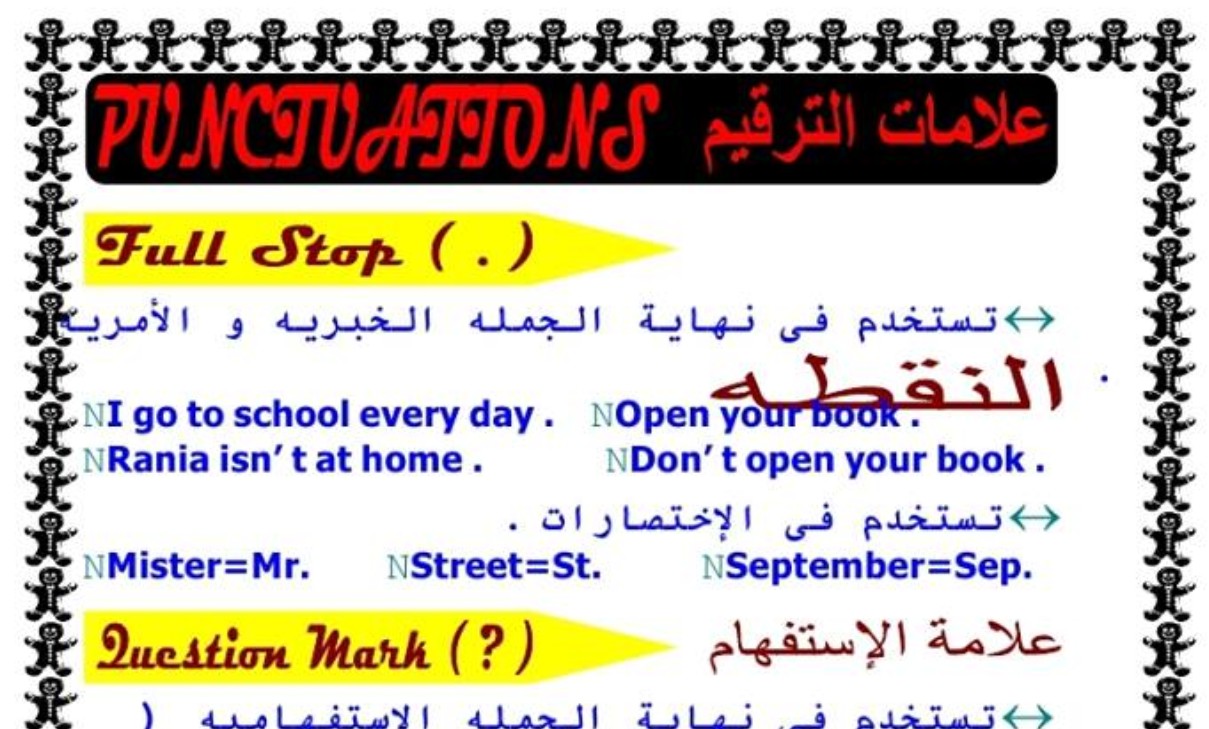 شرح علامات الترقيم بالانجليزي