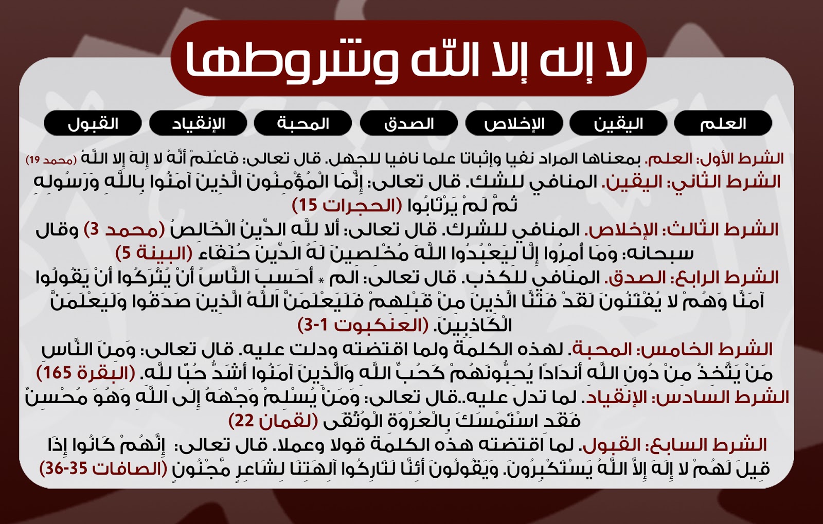شروط لا إله إلا الله الثمانية