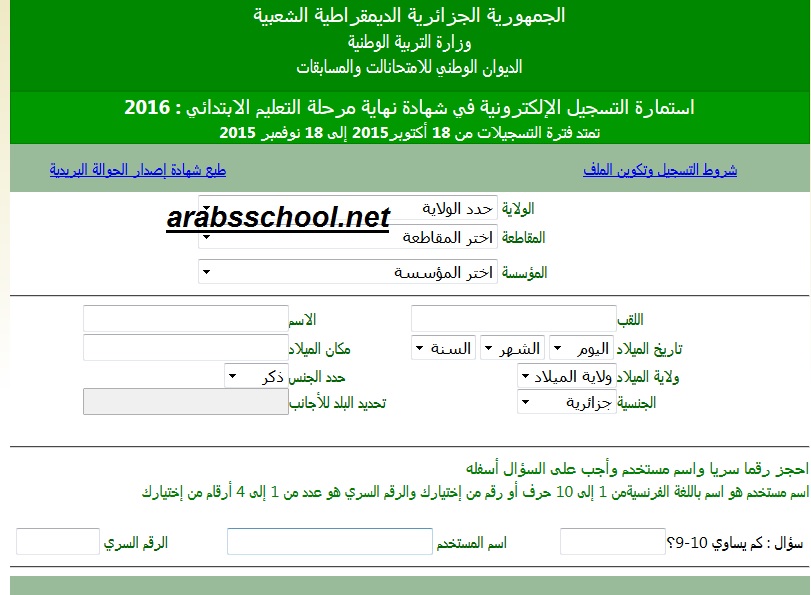 تسجيلات شهادة التعليم الابتدائي 2019 في الجزائر