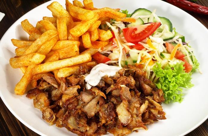 Chicken platter صحن. Sar 10 ساندوتش أوصال لحم. ٢ ثمرة فلفل مل ون مقطعة شرائح. شاورما الدجاج مع تغميسة الثوم.