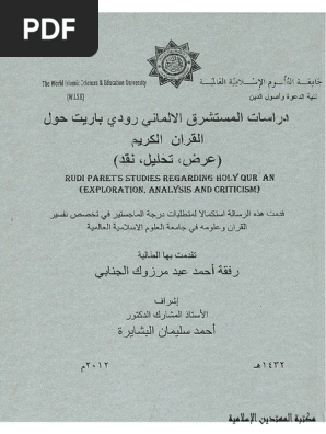 راسات المستشرق الالماني رودي باريت حول القرآن الكريم Pdf