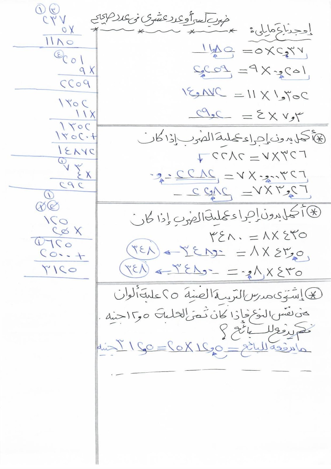 ضرب عدد عشري في عدد صحيح للصف الخامس الابتدائي مدونة ميس سلوى حامد