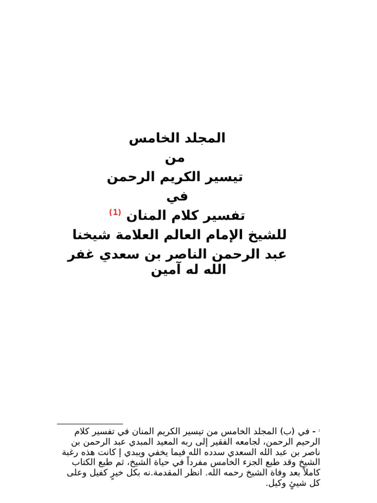 4 تيسير الكريم الرحمن في تفسير كلام المنان السعدى من سورة فاطر حتى الناس