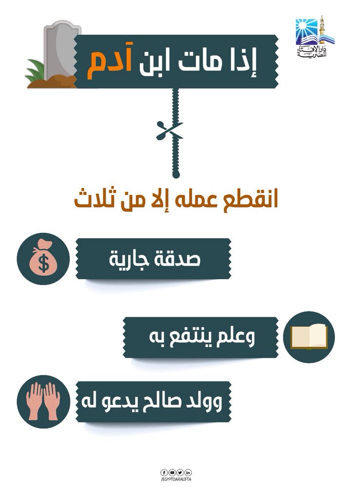 دار الإفتاء المصرية On Twitter إذا مات ابن آدم انقطع عمله إلا من ثلاث صدقة جارية وعلم ينتفع به وولد صالح يدعو له