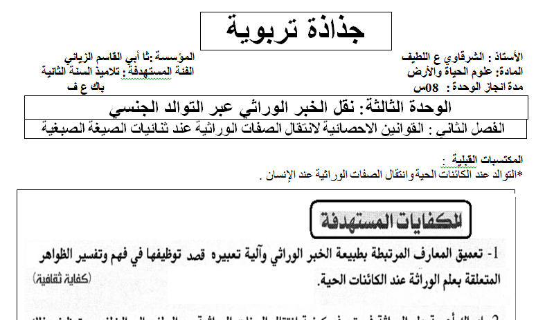 الثانية باكالوريا جذاذة تربوية خاصة بمادة علوم الحياة والارض موقع الأساتذة والتلاميذ للتعليم عن بعد