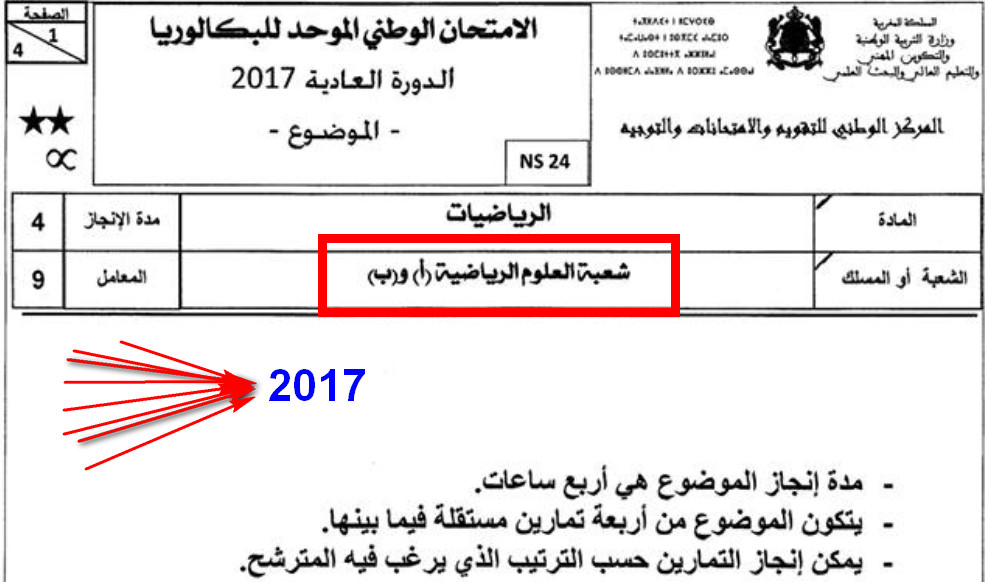 الإمتحان الوطني للبكالوريا مادة الرياضيات 2017 الدورة العادية شعبة العلوم الرياضية مع التصحيح عالم الرياضيات